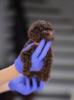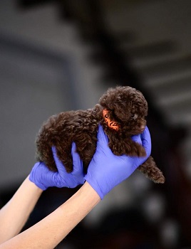 Комментарии: Новая, уникальная порода в мире элитных пород собак - Teacup teddy poodle. С гордостью представляем микро девочку потрясающего шоколадного окраса. Ее вес всего 560 грамм, в холке - 13 см. Дорого!